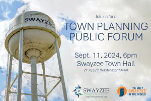 Join us tonight for a public forum to help develop Swayzee’s future! We want your input to guide the development of our town’s 10-year plan.